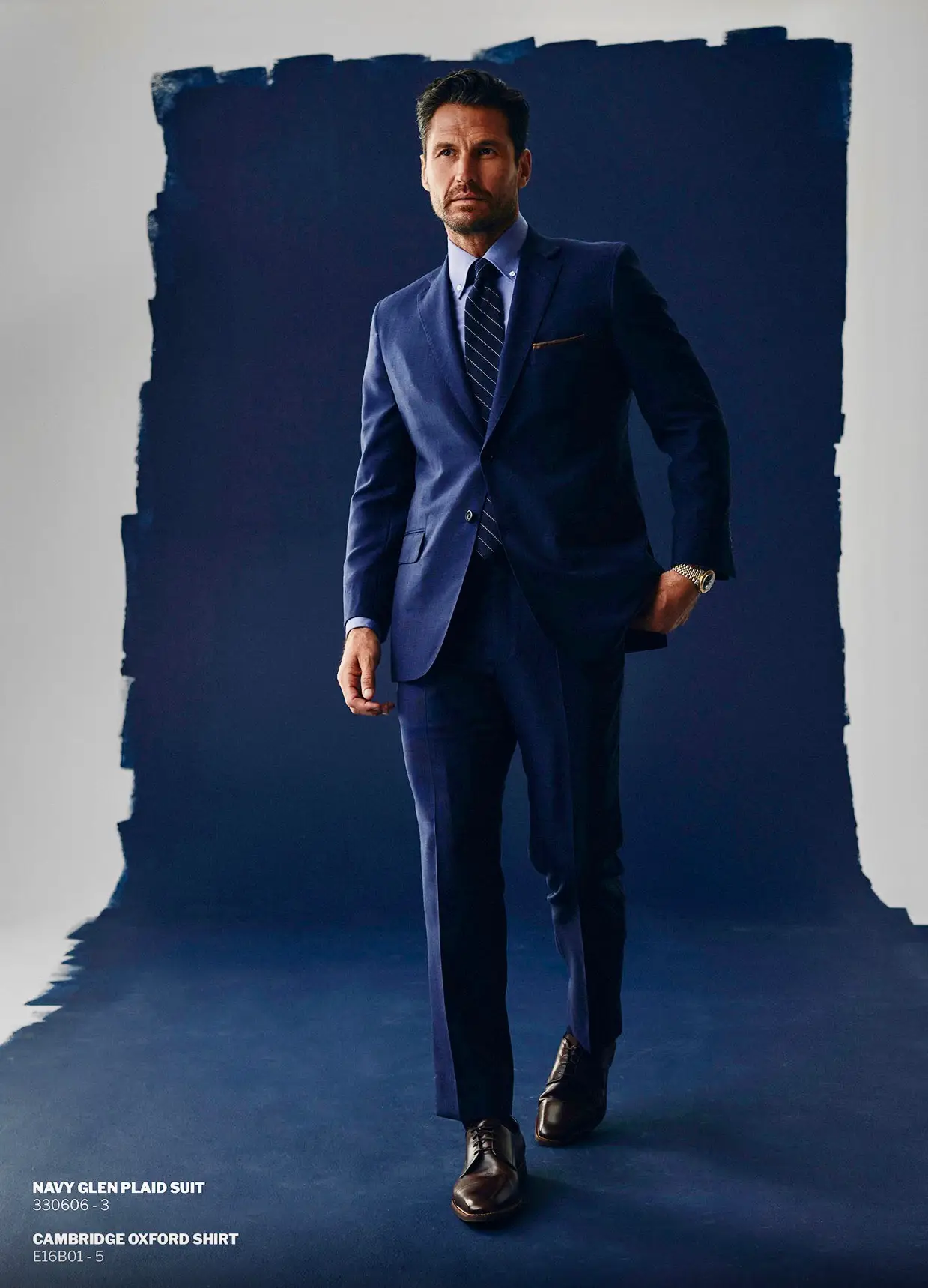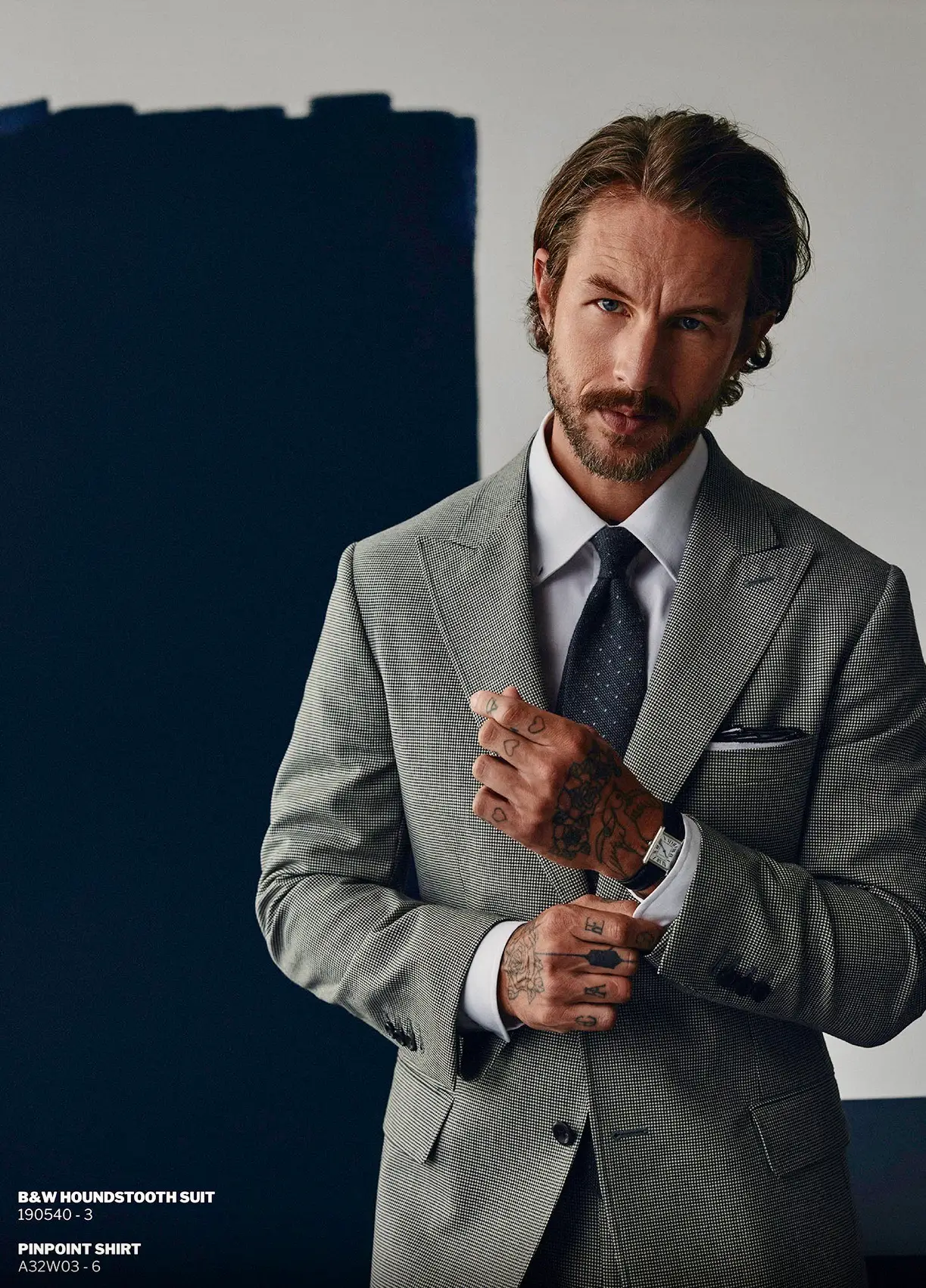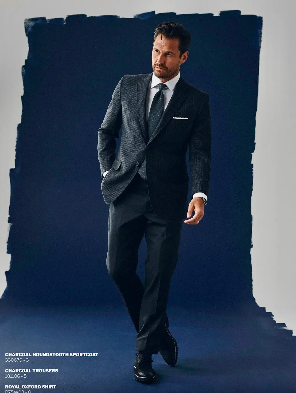 Stel je een marineblauw pak voor met een witte overhemden en een subtiele das – ideaal voor boardroom battles.