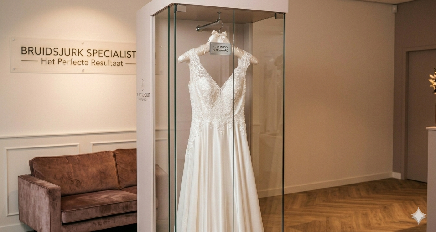 Professionele Trouwjurk Reiniging zorgt ervoor dat uw jurk schoon, fris en duurzaam geconserveerd wordt.